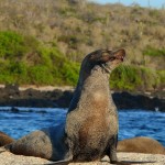 It is also about expectations – maybe I’d misread the hype – I had been expecting big stuff: sharks, big schools of fish and classrooms of rays, turtles, sea lions and marine iguanas. The two fellas from Quito doing DSDs and their two OW buddies naturally thought the whole experience had been grand. During the surface interval we motored back towards Puerto Ayora and descended upon a shallow site called La Loberia (lobo del mar being a sea lion in Spanish). The viz was at most 10 metres and full of fish poo, but we soon saw why we were here.
