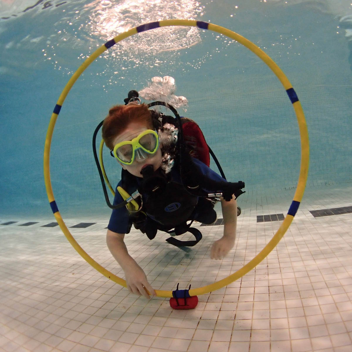 The two hour lesson includes learning about the basics of scuba diving, in-water safety practices, beginner underwater skills plus fun underwater games.