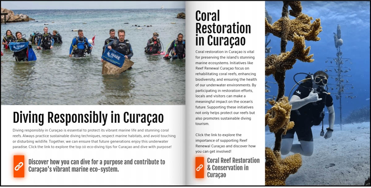 - Eco-forward resorts and operators who partner with organizations such as Reef Renewal Curaçao, PADI AWARE, and local marine conservation initiatives