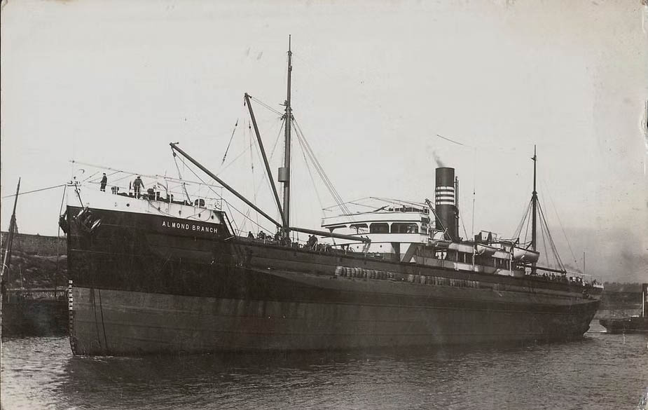 The vessel, the SS Almond Branch, is (or was) a 330-foot (100 m) steam-powered cargo ship. The massive vessel was torpedoed by a German submarine on November 27, 1917 during WWI and now rests in about 190 feet of water off the coast of Cornwall in the English Channel.
